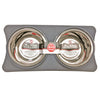 Durable stainless steel dishes in a curved diner.Non-skid rubber prevents slipping. Dishes are easy to remove for cleaning and filling.