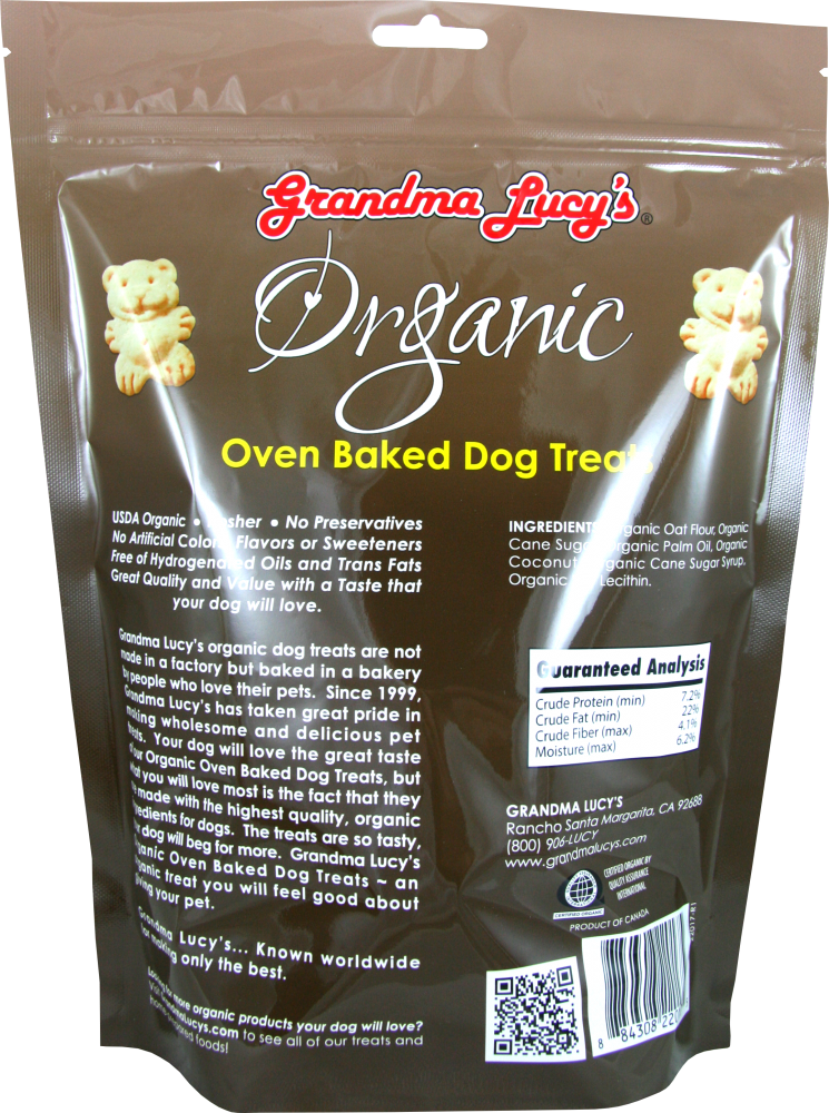 Since 1999, Grandma Lucy's has taken great pride in making wholesome, natural and delicious pet treats. Your dog will love the great taste of our Organic Oven-Baked Dog Treats, but what you will love most is the fact that they are made with organic, human-quality ingredients. The treats are so tasty, your dog will beg for more. Grandma Lucy's Organic Oven- Baked Dog Treats – an organic treat you will feel good about giving your pet.